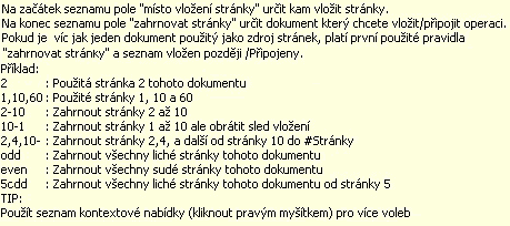 Soubory kam budeme vkládat jiné dokumenty jsou zobrazeny v horním okně. Po spuštění nástroje budete vyzváni ke specifikování souborů, které budou vkládany a jsou viditelné ve spodnějším okně. Seznam ve spodním okně nejprve sestavíme v nástroji sloučení a takto připravené je vložíme do požadovaného souboru, který je vybrán a zobrazen v horním okně.