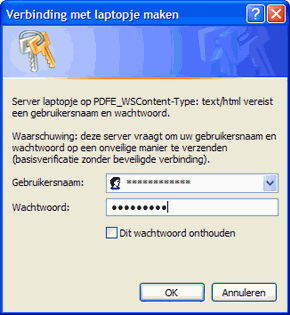 Het veld Vereist wachtwoordauthenticatie beperkt de toegankelijkheid van PDF-documenten. Het is een onvermijdbaar verschijnsel bij het toegang verkrijgen van een geblokkeerde documentendatabase bij het doorzoeken van het web. Deze functie is voor de gebruiker beschikbaar, indien hij administratierechten voor het netwerk heeft. Dit bepaald de toegang tot de database door het invullen van de velden Gebruikersnaam en Wachtwoord, waarmee u zich dan toegang kunt verschaffen als geautoriseerd gebruiker.