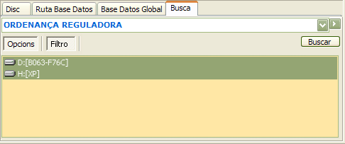 En el cas que els documents trobats perteneixquen a mes d'un soport fisic si activem l'opcio de filtrat, els documents son presentats en el panel en funcio del soport al que perteneixen. Vore figura.