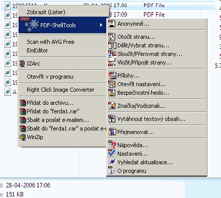 Nástroje dosažitelné z kontextové nabídky, kdy na vybraný soubor kliknete pravým tlačítkem myši, a poté v menu vyberete požadovaný nástroj, nebo v průzkumníkovi vyhledat a otevřít dialog klávesovými zkratkami, atd.