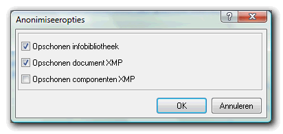 Het commando Anonimiseren. PDF-bestanden worden vaak aan andere personen doorgegeven en ongecontroleerd verbreid (o.a. via het internet). Het Anonimiseren is ervoor om alle meta-data (informatievelden) van PDF-documenten in één bewerking te verwijderen.